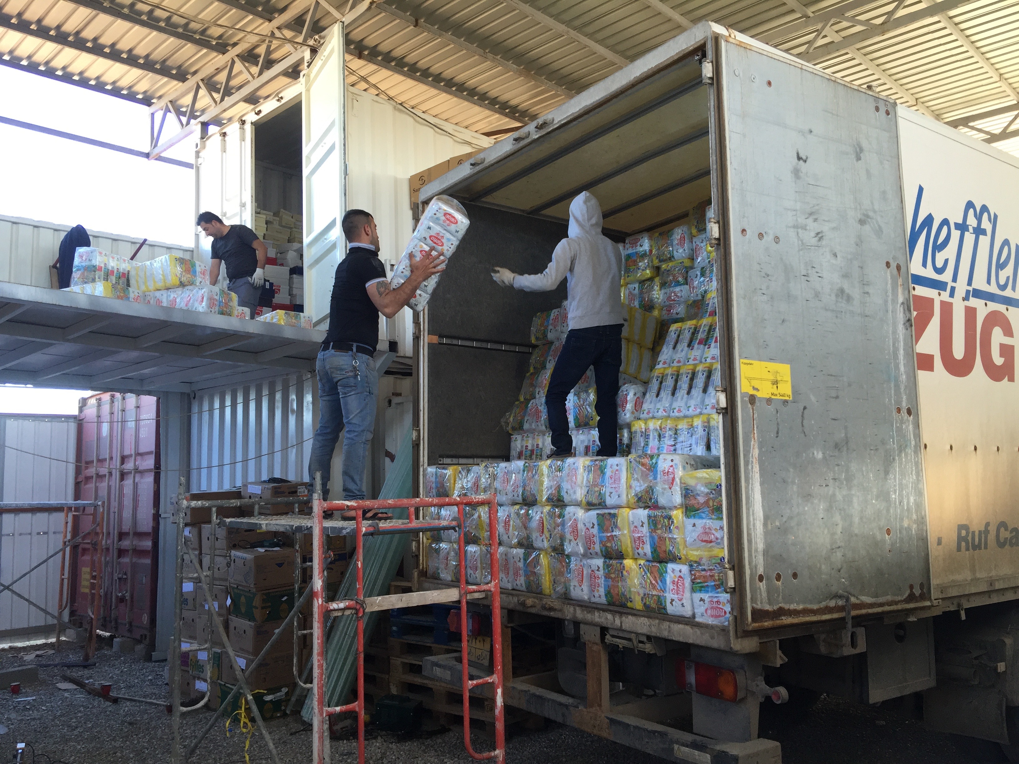 Truckload of diapers supplied by the Religious Freedom Coalition unloaded at a ministry warehouse in Erbil, Iraq